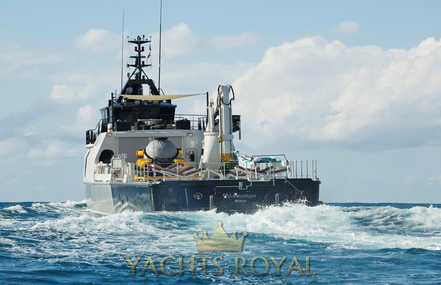Medium sized yacht made by Damen shipyard belongs to Yacht Support series and was built in 2012. It has powerful engine installed that allows to achieve maximum speed of 22 knots. Capacious fuel tank allows to cover very long distance on water about 5000 miles at an average speed of 16 knots. and allows 4 guests and 8 crew members to be on board at the same time. Damen designed the exterior of the vessel.
