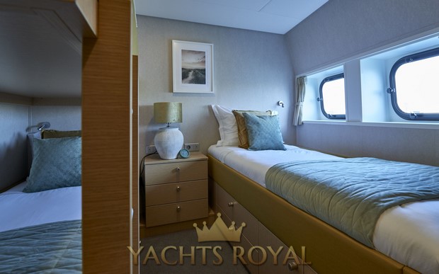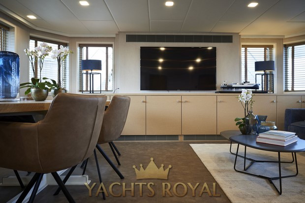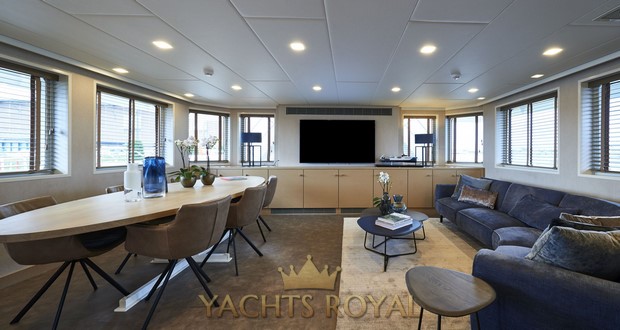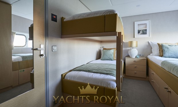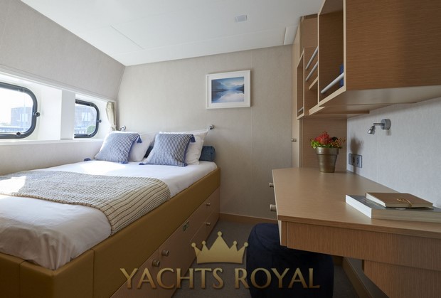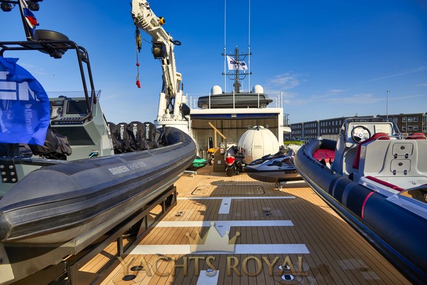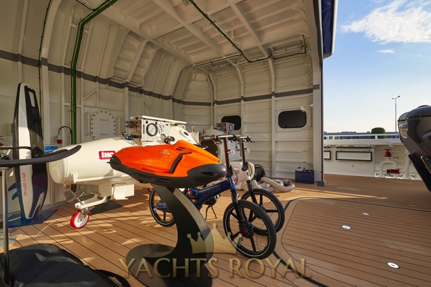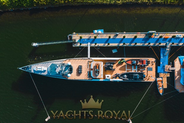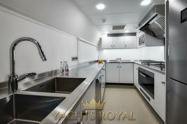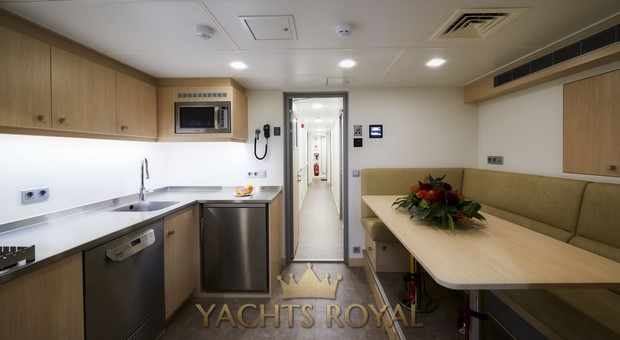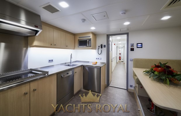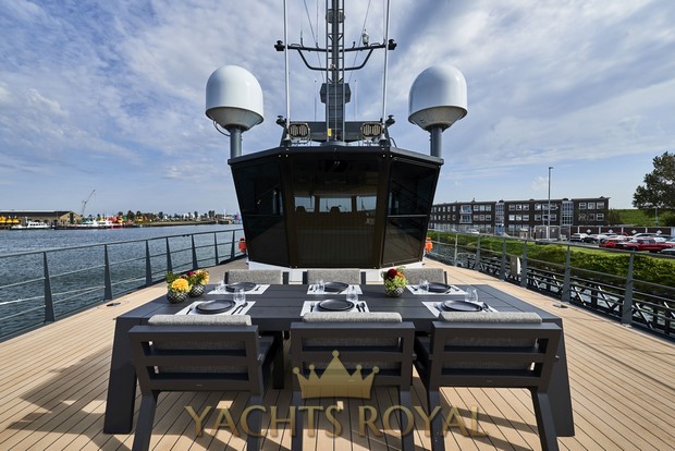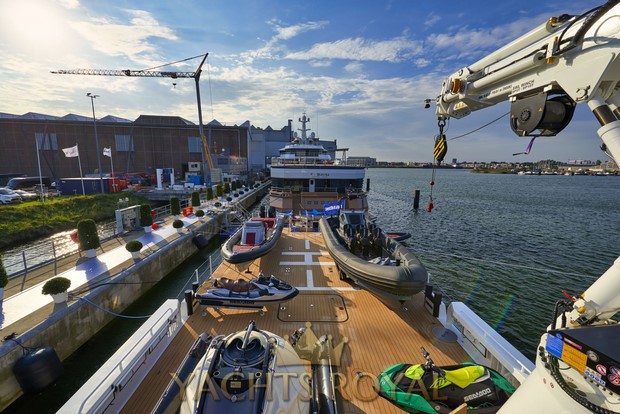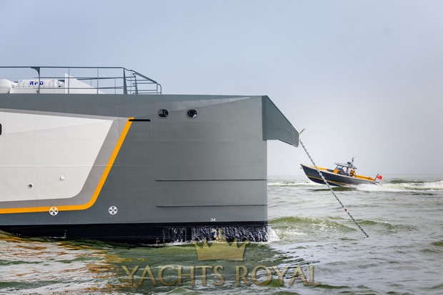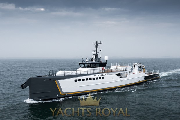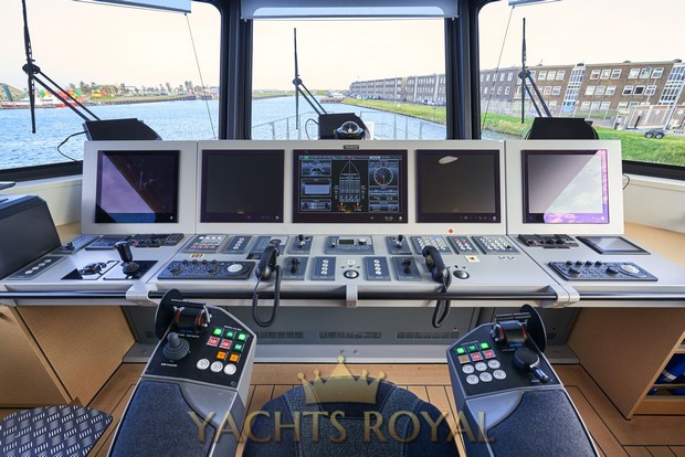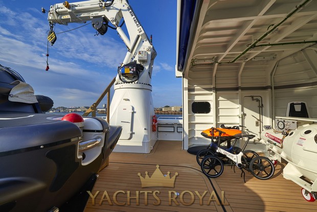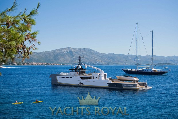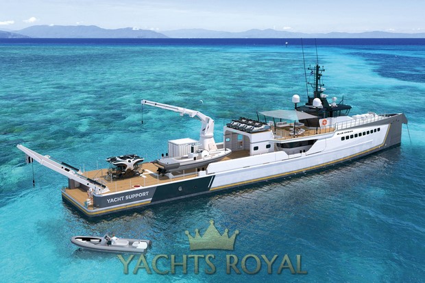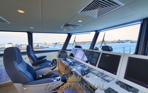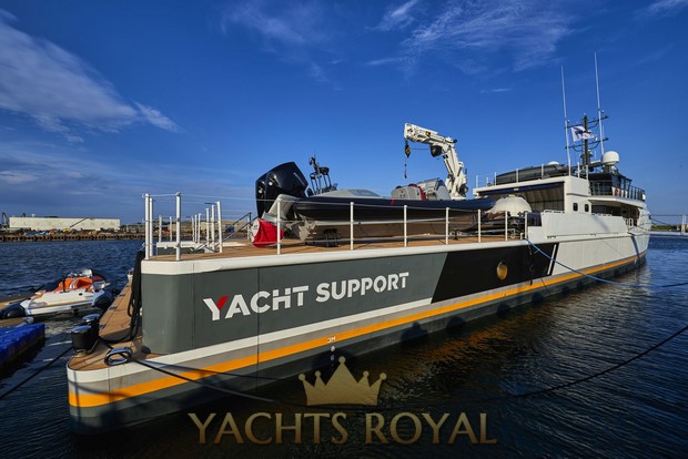 Medium sized yacht made by Damen shipyard belongs to Yacht Support series. It has powerful engine installed that allows to achieve maximum speed of 20 knots. Capacious fuel tank allows to cover very long distance on water about 5000 miles at an average speed of 10 knots. and allows 8 guests and 12 crew members to be on board at the same time. Damen Yachting designed the exterior of the vessel.