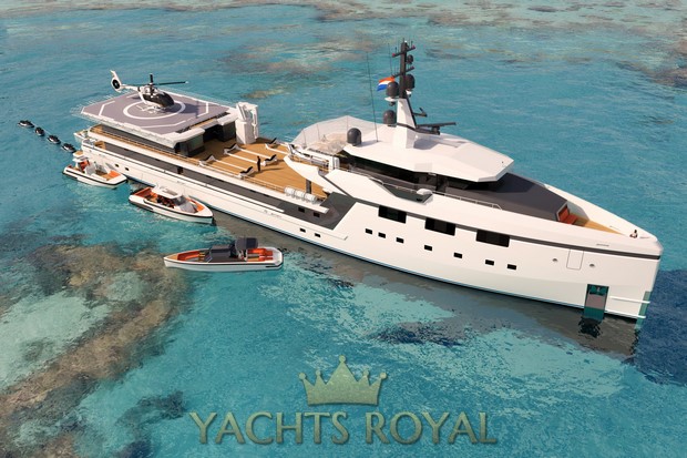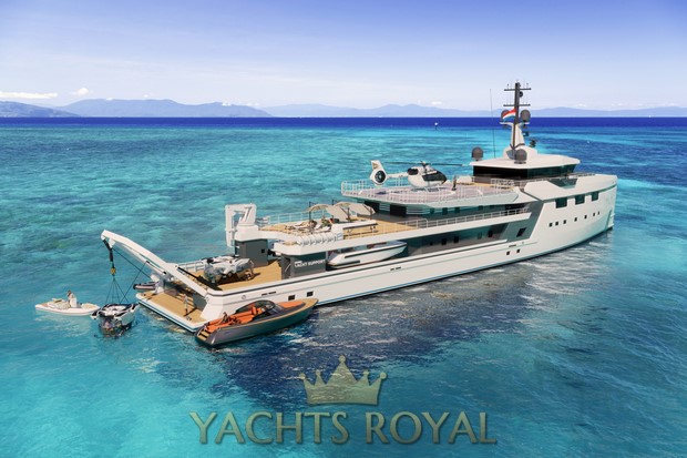 Medium sized yacht made by Damen shipyard belongs to Yacht Support series. It has powerful engine installed that allows to achieve maximum speed of 18 knots. Capacious fuel tank allows to cover very long distance on water about 5000 miles at an average speed of 15 knots. and allows 4 guests and 32 crew members to be on board at the same time. Damen Yachting designed the exterior of the vessel.