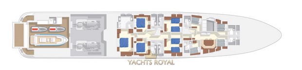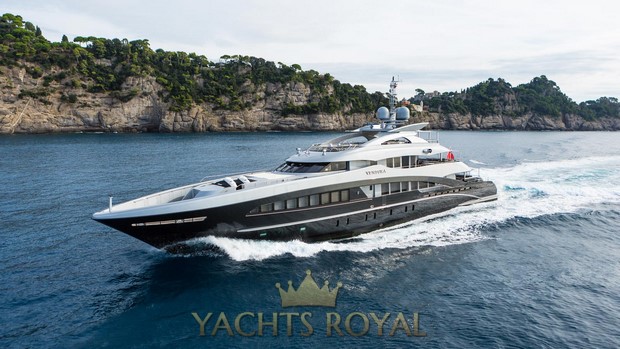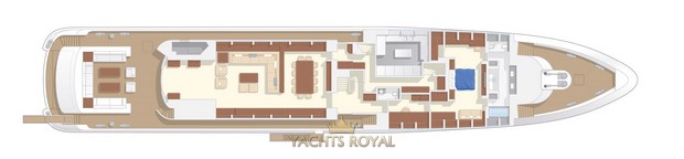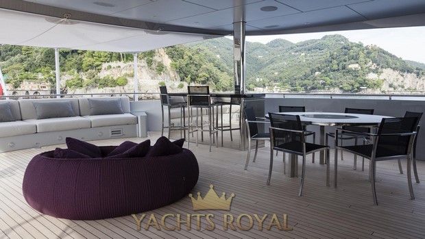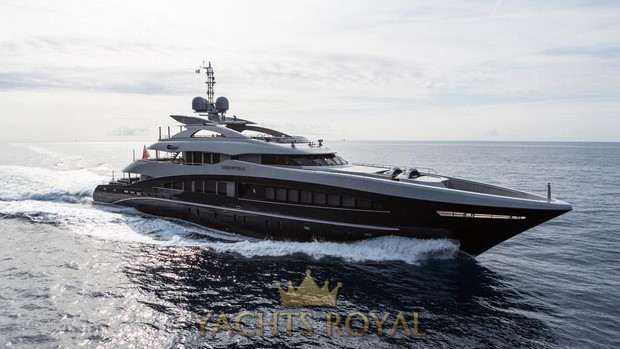 Medium sized yacht made by Heesen shipyard that was built in 2013. It has powerful engine installed that allows to achieve maximum speed of 23 knots. Capacious 68800 liters fuel tank allows to cover very long distance on water about 3200 miles at an average speed of 11 knots. The yacht is spacious enough and allows 12 guests and 9 crew members to be on board at the same time. Francesco Paszkowski Design was responsible for the interior design, and Omega Architects created the exterior of the vessel.