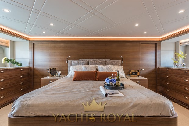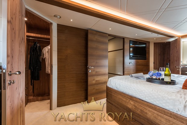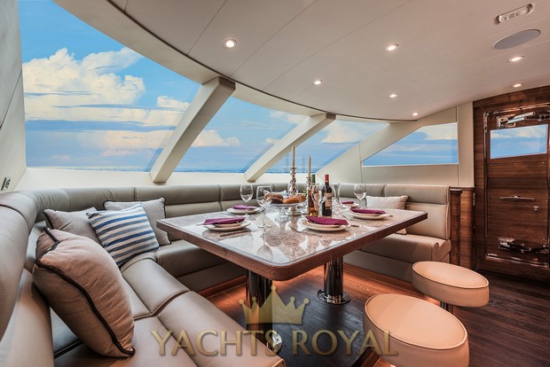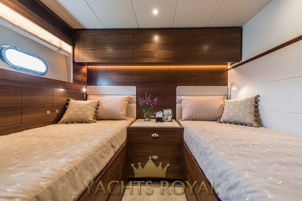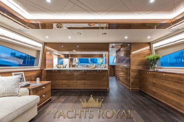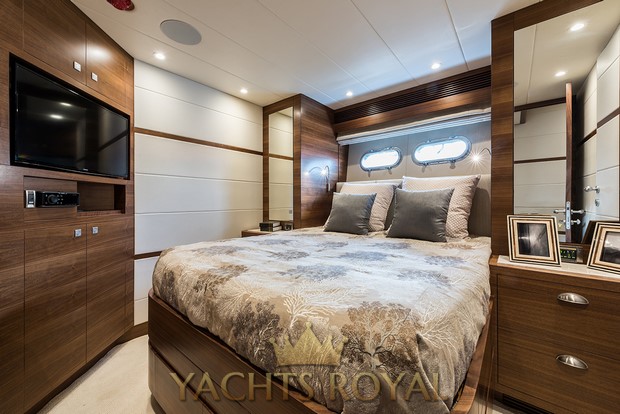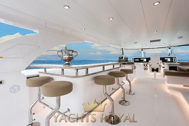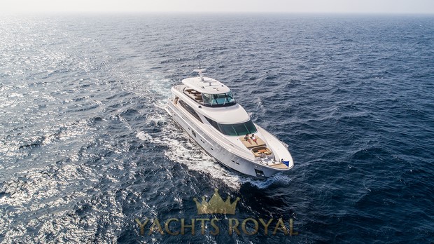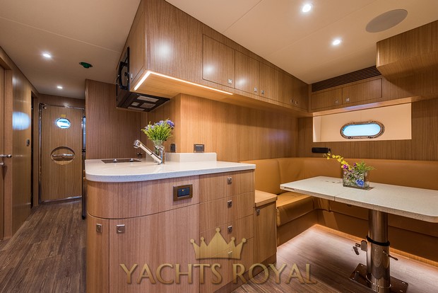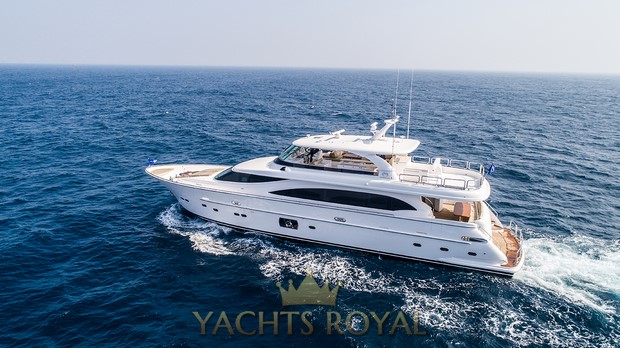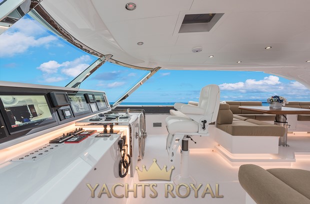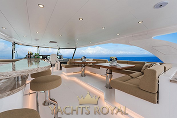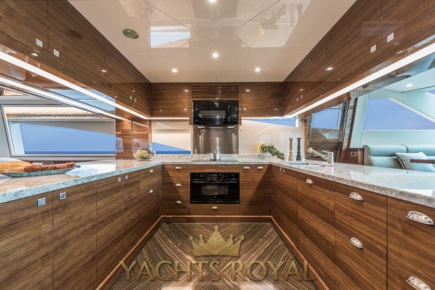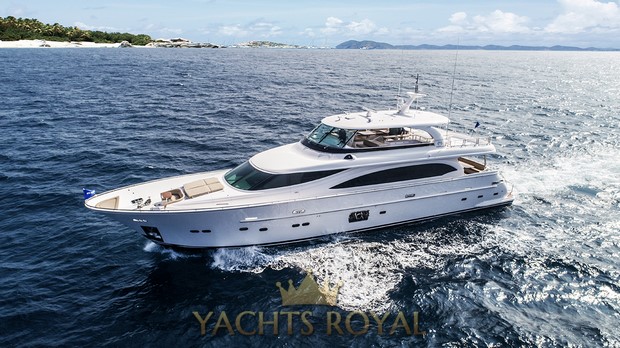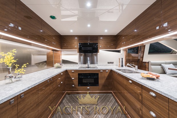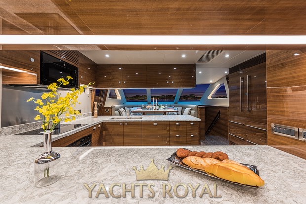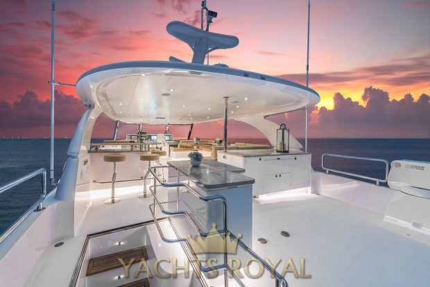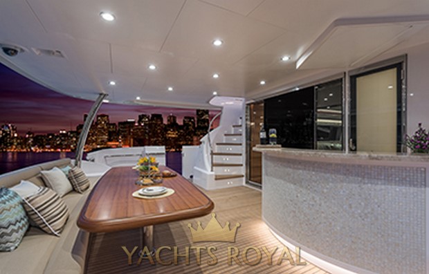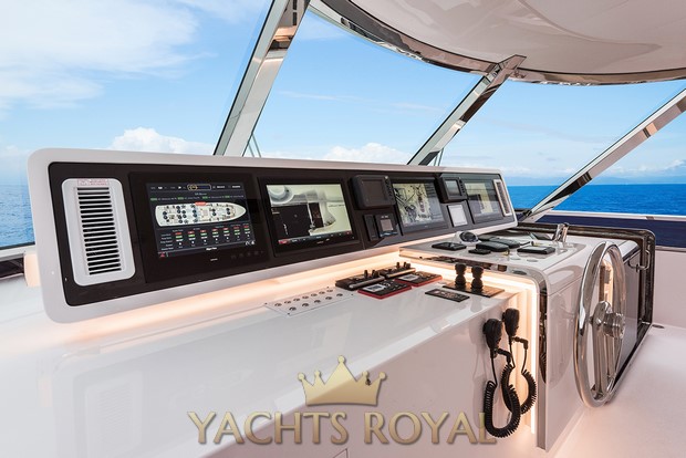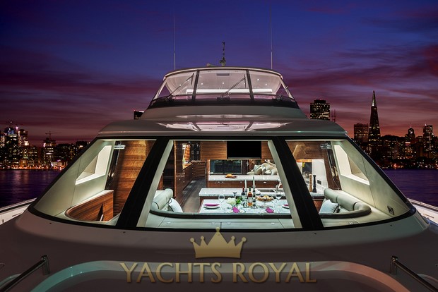 Compact yacht made by Horizon shipyard belongs to E Series series. It has powerful engine installed. The yacht is very roomy and allows 18 guests to be on board at the same time. .