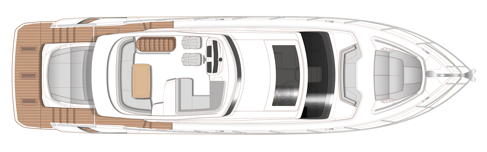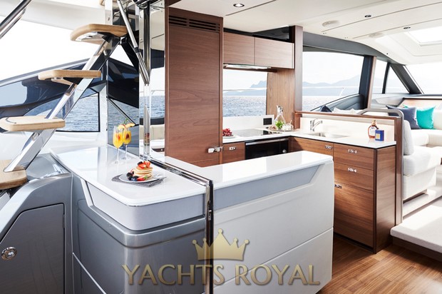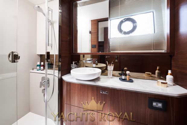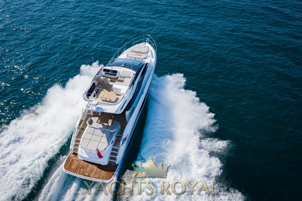 Compact yacht made by Princess shipyard belongs to S Class series. It has 2400hp engine installed that allows to achieve very high maximum speed of 38 knots. .